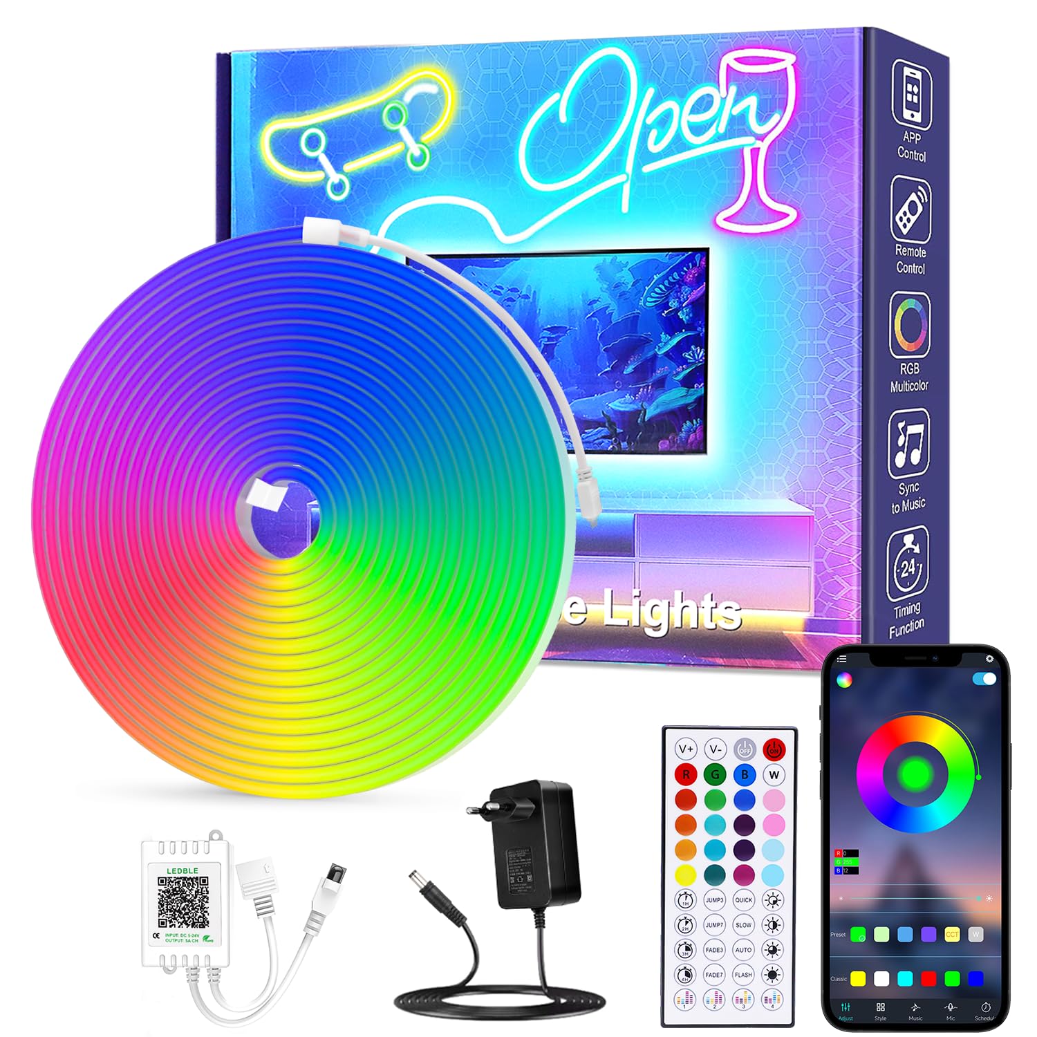 Be the first to review “5M LED Luce al Neon con APP/telecomando, luci al neon flessibili fai da te per interni”