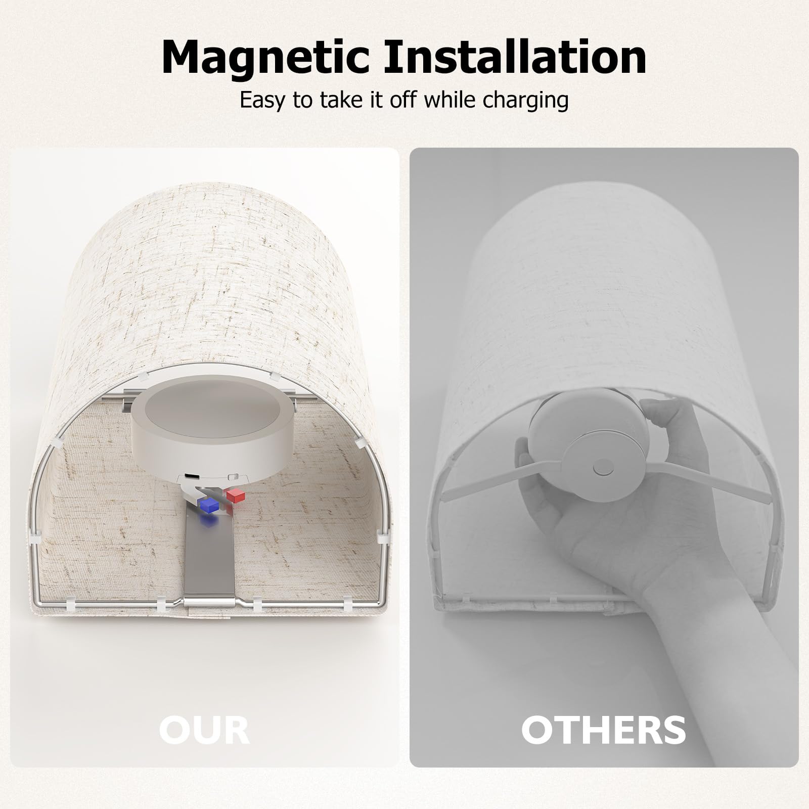 Rechargeable Battery Operated–HURYEE modern wall lights set of 2 are powered by built-in rechargeable batteries,which make our indoor battery operated wall lights more convenient to use.No need to replace the battery frequently.Magnetic design is more convenient to charge.
