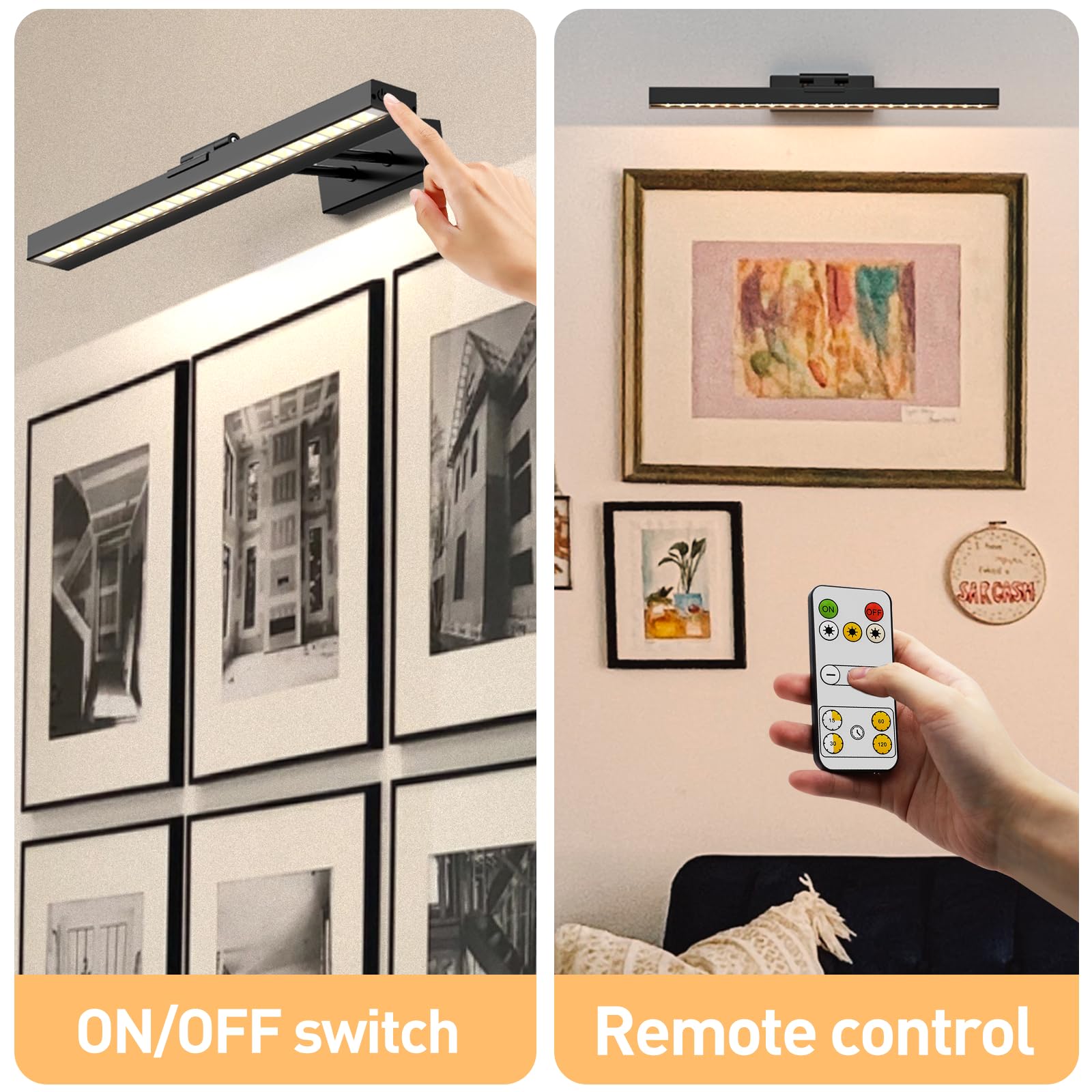- [Wide Application & 12-Month Warranty]: Use these picture lights to illuminate picture frames, paintings, artwork, drawing boards, closets, and cabinets.We provide 12 months warranty for picture frame lights for wall,any needs welcome to contact us.