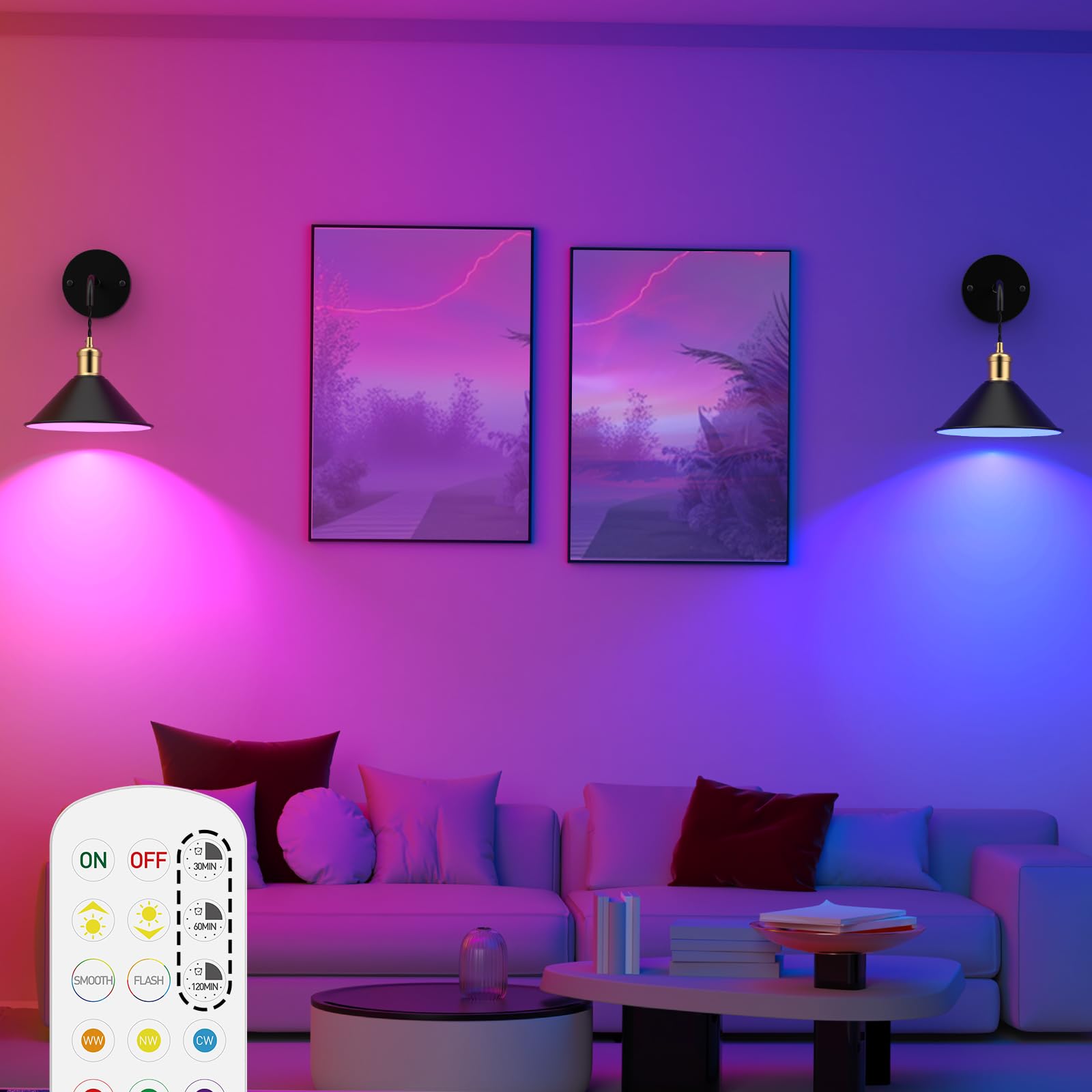 - 【Remote Control & Timer】Our wall light includes remote control for easy operation and two modes for smooth and flash lighting effects. Timer function extends usage time and is more energy efficient. Brightness levels and effects can be easily customized using the remote control, even from the bed or sofa.