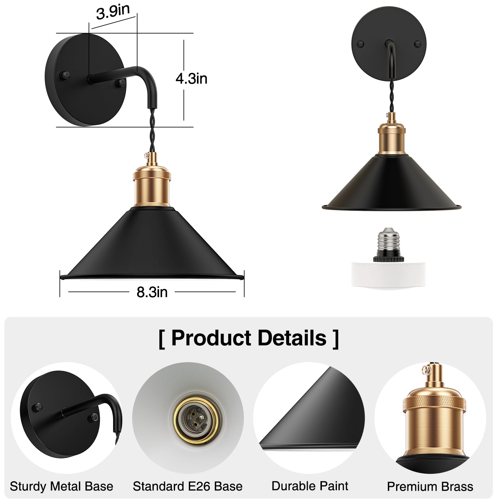 - 【High-Quality】ETL listed for safe use, this indoor wall light sconce has passed the strict aging test, it’s damp-proof and will never get rusty or corrosion after years of use. You don’t need to frequently change yours due to poor quality anymore!