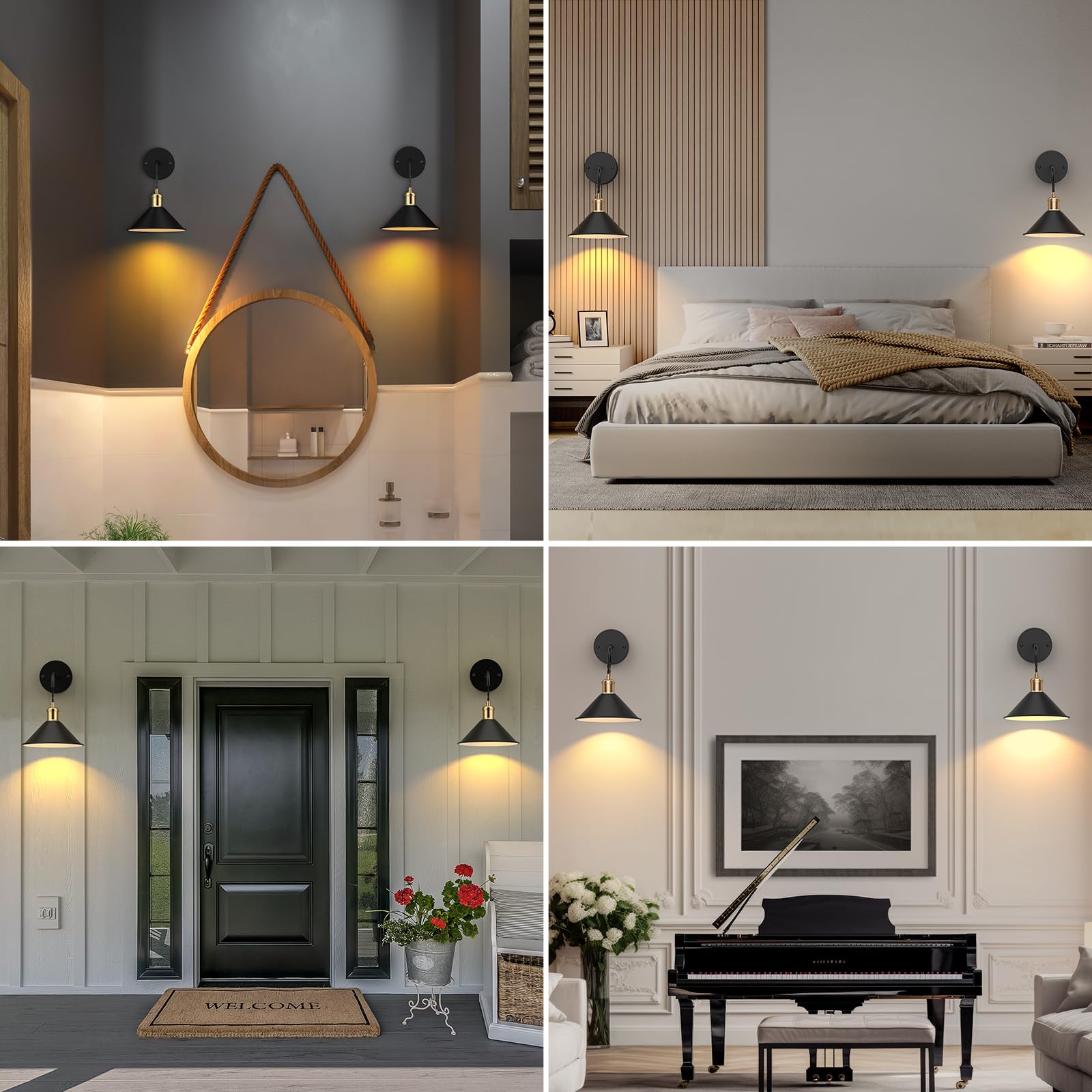 - 【Wide Applications】A black sconce wall lighting can be used individually, in pairs, or in multiples. Ideal for home spaces including the hallway, barn, kitchen, entryway, bathroom, bedroom, staircase, loft, balcony, or as an art light above the paintings. As well as business spaces such as restaurants, café, bars, offices, art exhibitions, and more applications.