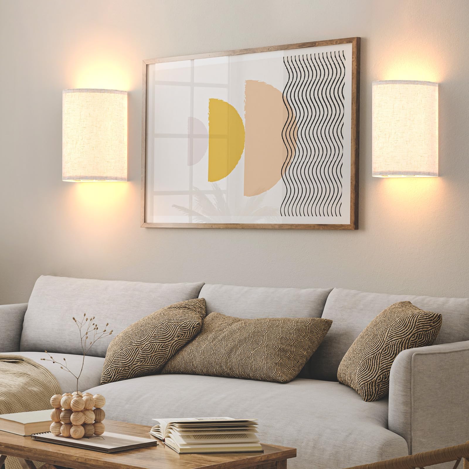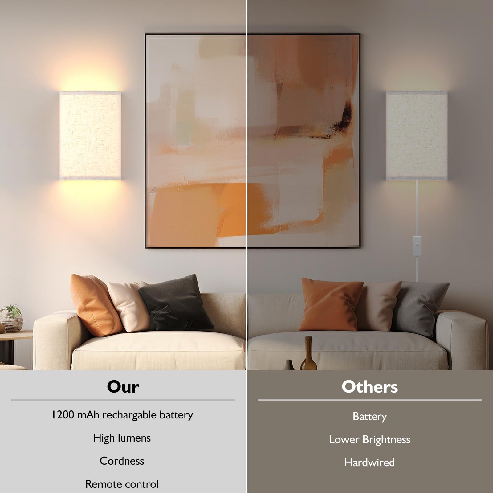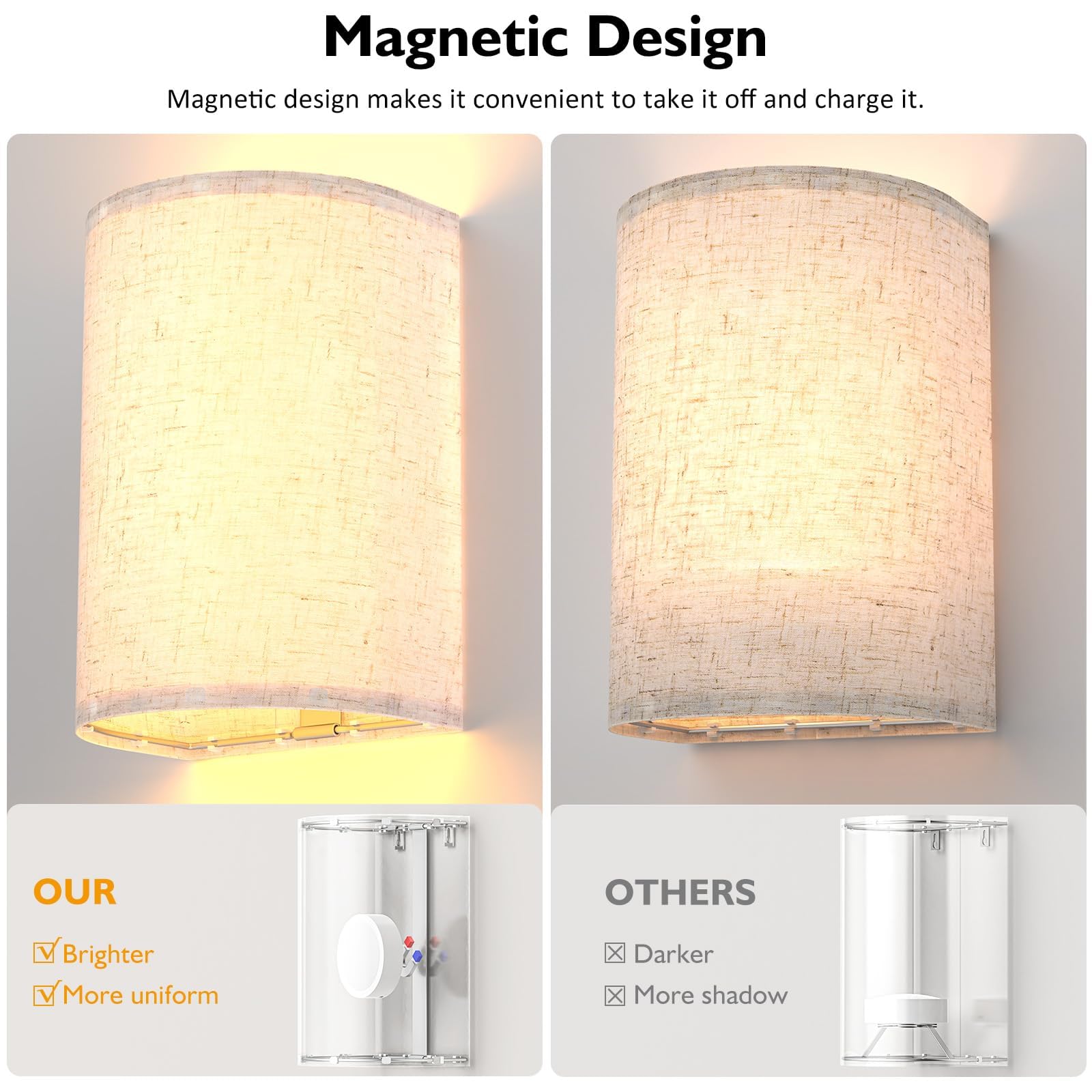 Wall Lights Set of 2,Battery Operated Wall Lights Fabric Wall Sconce Rechargeable